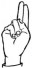 На ћирилици написано ИВА ВУЈАЧИЋ састоји се из 10 слова [?]. Исписано ћириличном једноручном азбуком за глувонеме: